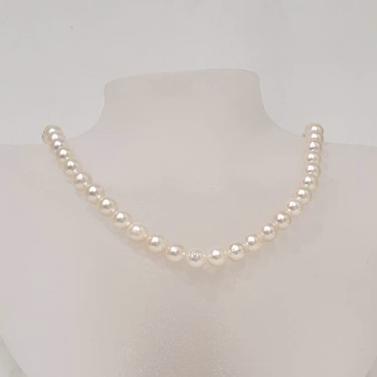 Akoya pärlor 7-7,5 mm vita 7 500 kr I lager. Lägg i korgen Dela Lagersaldo: 1 Artikelnummer: pso01 mer info Hel sträng ca 40 cm med vita japanska akoya pärlor storlek 7-7,5 mm.Jämna och runda, fin kvalitet, inga ytskador.OBS! strängen är inte färdigknuten.