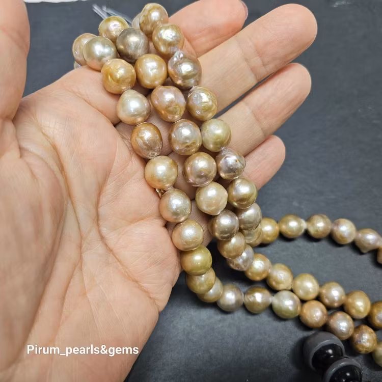 Rosa-guld metallic naturfärgade pärlor på sträng.