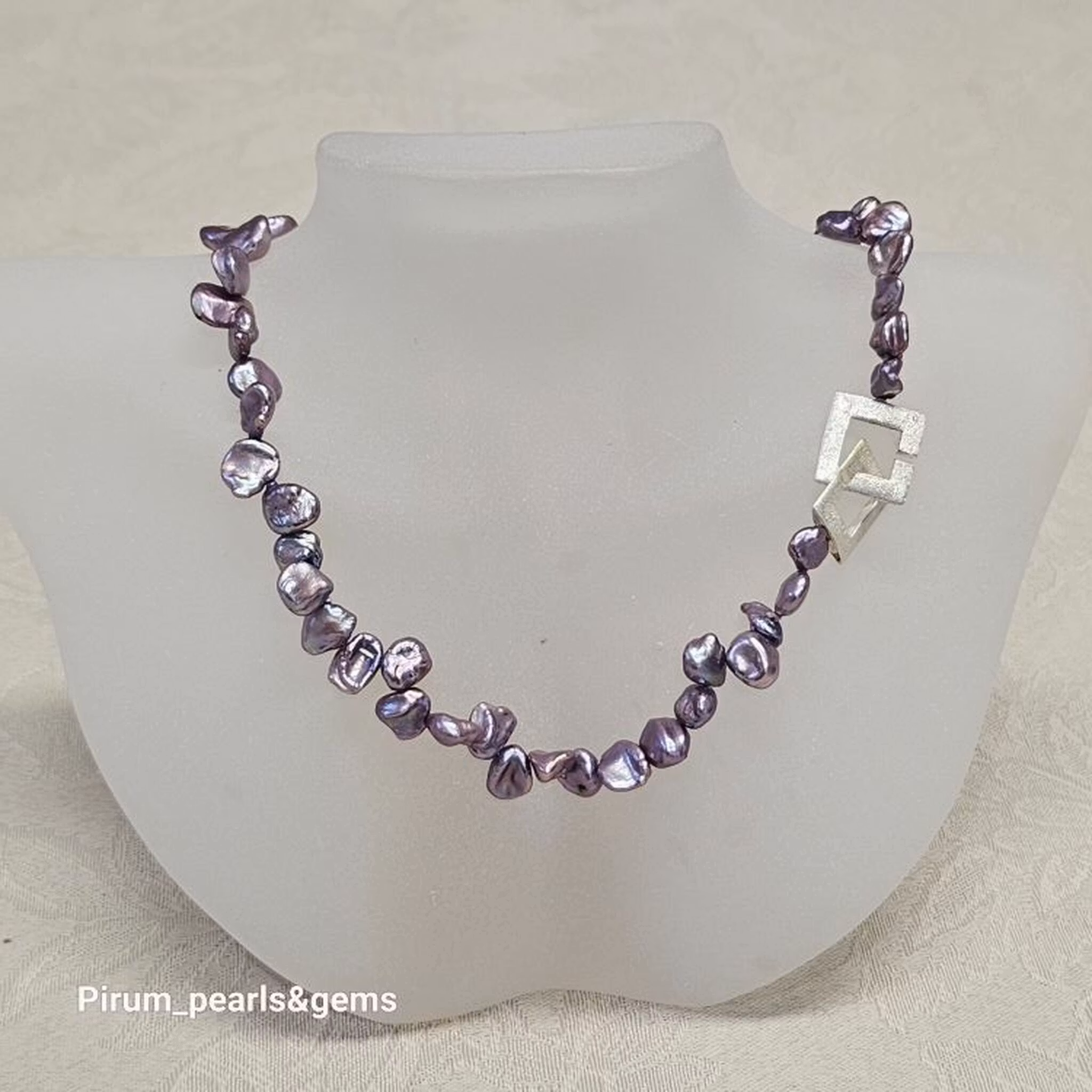 Halsband med lila ojämna s.k. keshipärlor och vackert silverlås
