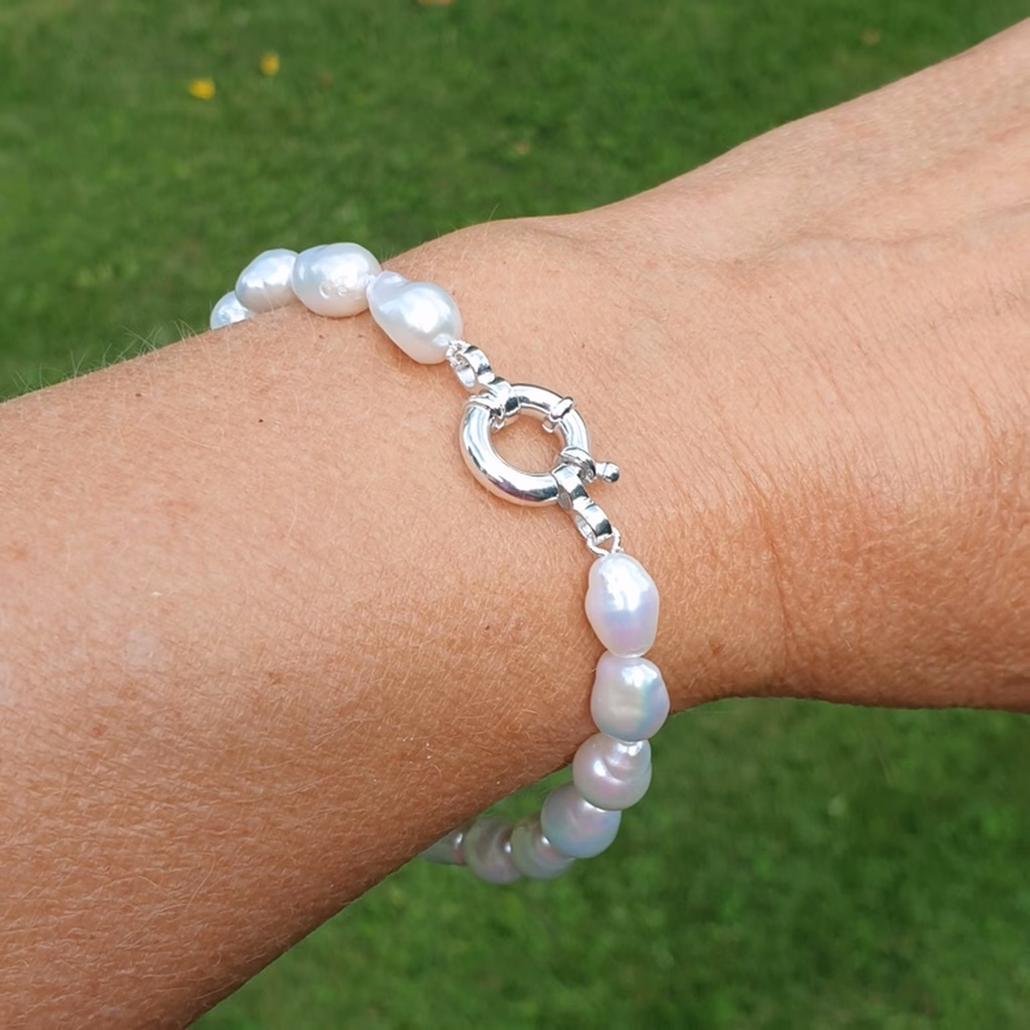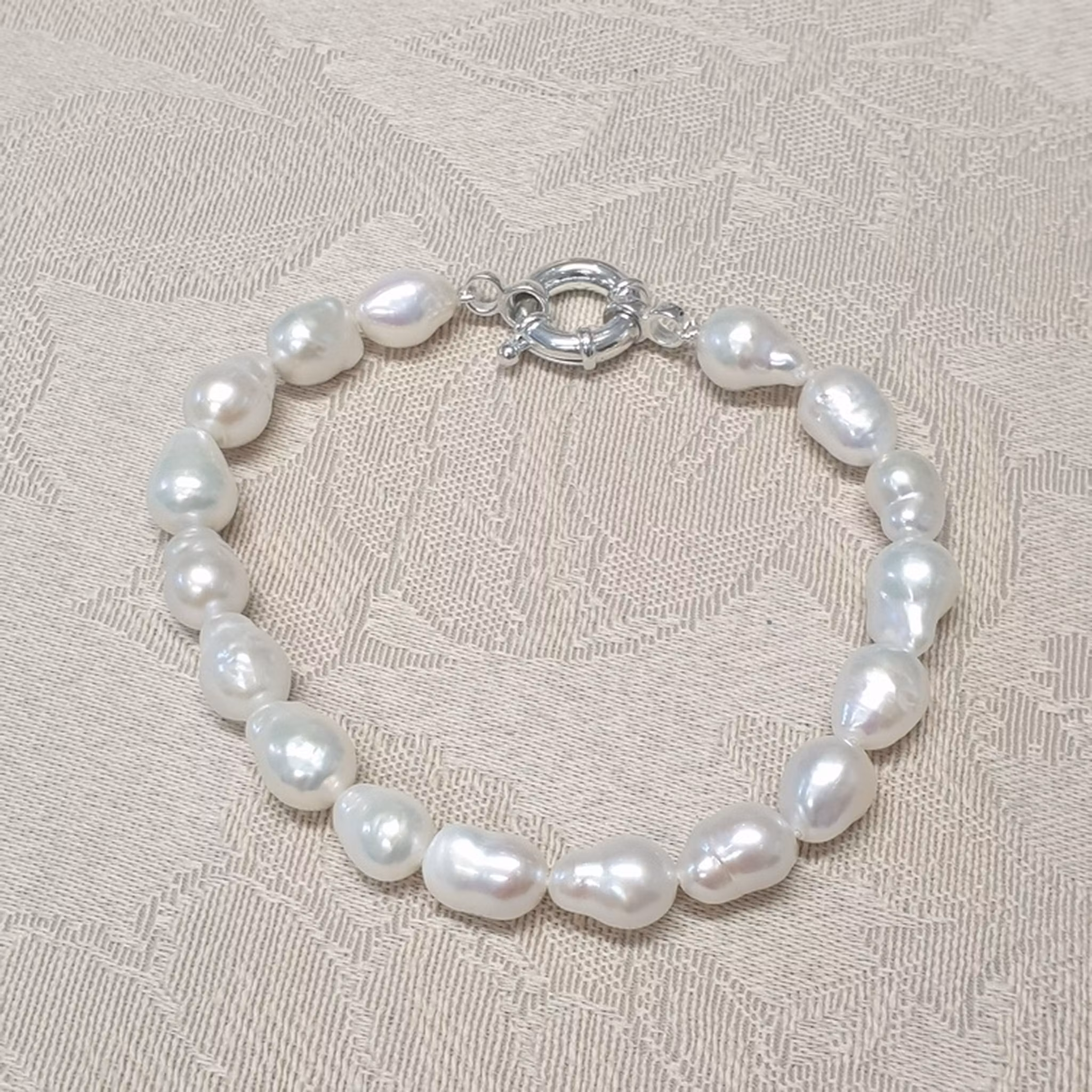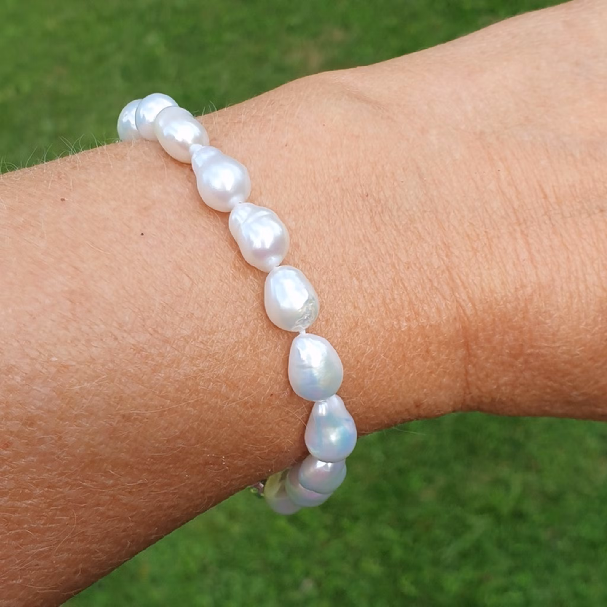Armband med vita barockformade akoyapärlor (saltvattenpärlor) 7-8 mm.