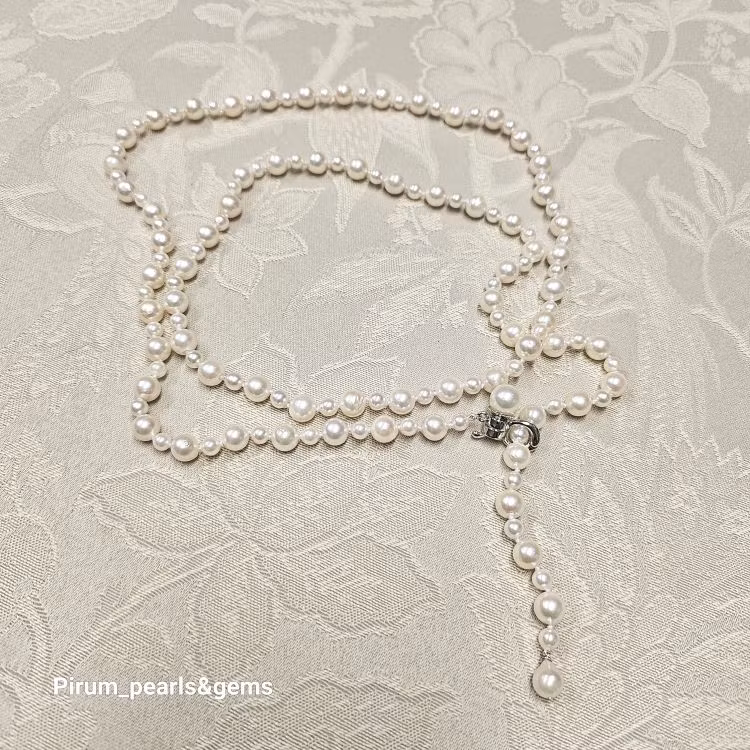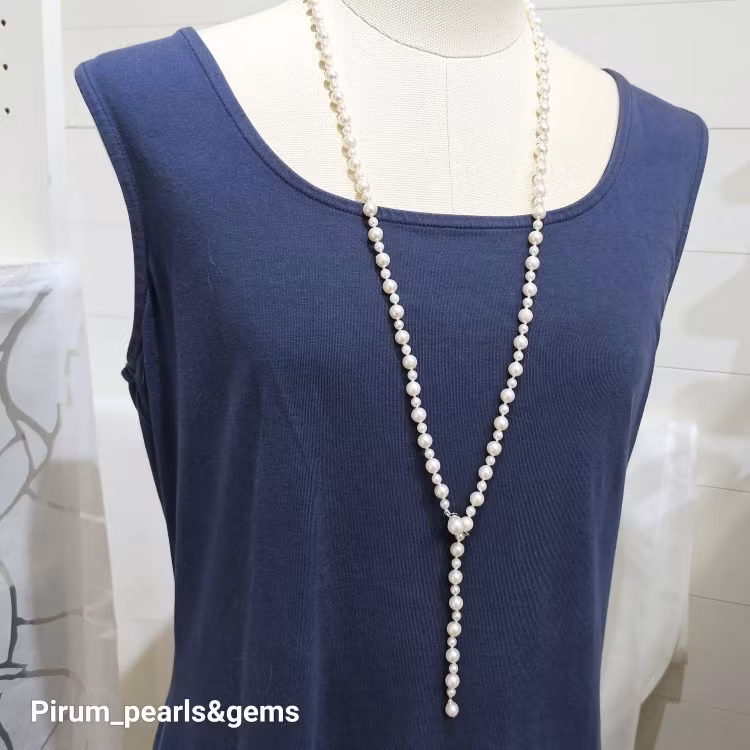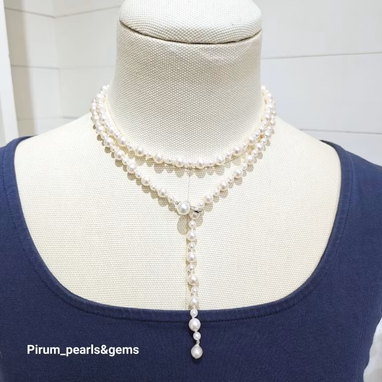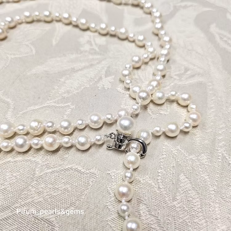 | Material saltvattenpärlor, akoya, naturfärgade vita, 3-8,55 och 7,5 mm Pärlornas ursprung Japan Hållbarhetsgrad (S,M,H) se info här - S Material i lås/mekanik nickelfritt rhodiumpläterat silverlås med odlad pärla Totallängd 93 cm |
