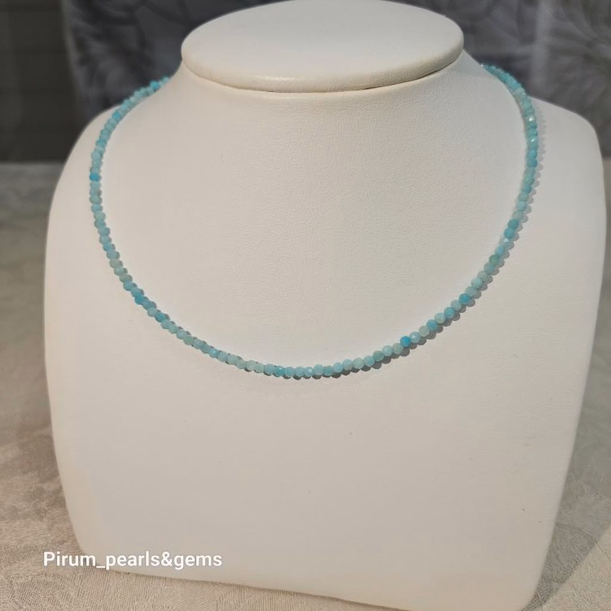 Halsband med fasettslipad 3 mm turkos amazonit 500 kr I lager. Lägg i korgen Dela Lagersaldo: 4 Artikelnummer: ne48 mer info Vacker fasettslipad 3 mm turkos amazonit.Nickelfritt silverlås med kedja.Längd 40 cm + 4 cm kedja.Material turkos amazonitHållbarhetsgrad (S,M,H) se info här Material i lås/mekanik lås i nickelfritt silverTotallängd 40 + 4 cm kedja