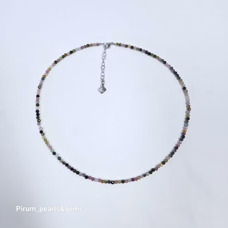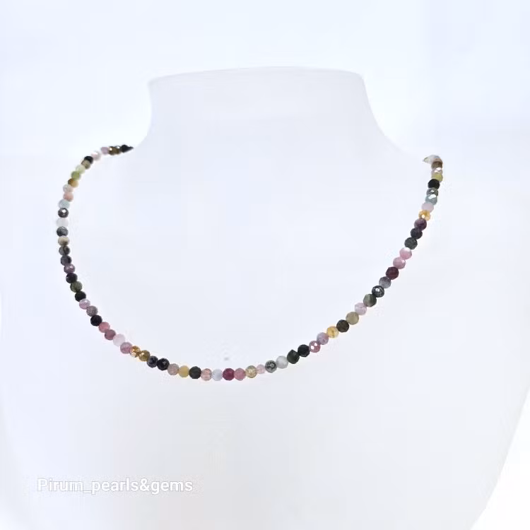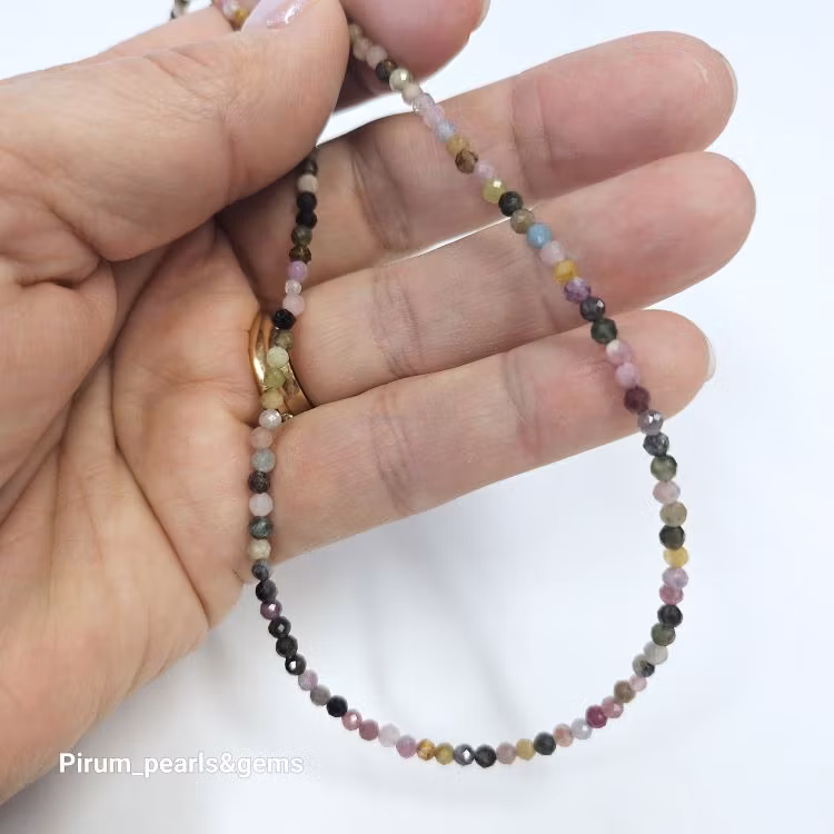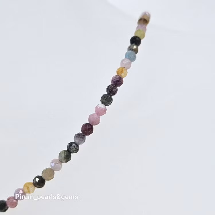 Fasettslipade 3,5 mm med fint glitter, gnistrande. Bl a turmalin, ametist, akvamarin m fl.