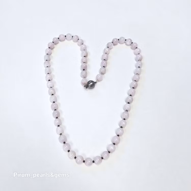 Vackert stencollier med lila kunzite och små fasettslipade hematitstenar emellan.