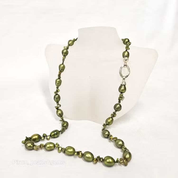Kopia Halsband med gröna pärlor och stort silverlås 1 500 kr I lager. Lägg i korgen Dela Lagersaldo: 1 Artikelnummer: ne208 mer info Halsband med vackra gröna sötvattenpärlor 9-10 mm och mindre emellan.Infärgade sötvattenpärlor från Kina. Supersnyggt silverlås.Längd ca 56 cm.