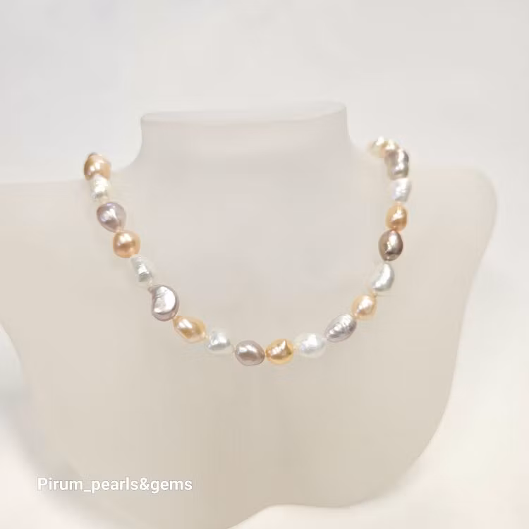 | Material sötvattenpärlor, naturfärgade, 7-8 mm Pärlornas ursprung Kina Hållbarhetsgrad (S,M,H) se info här - Material i lås/mekanik nickelfritt 925 silverlås Totallängd 45 cm |