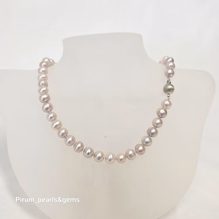 Ljuvligt halsband med rosa naturfärgade sötvattenpärlor.