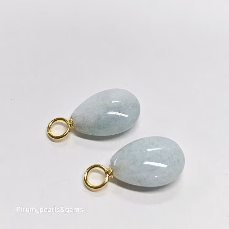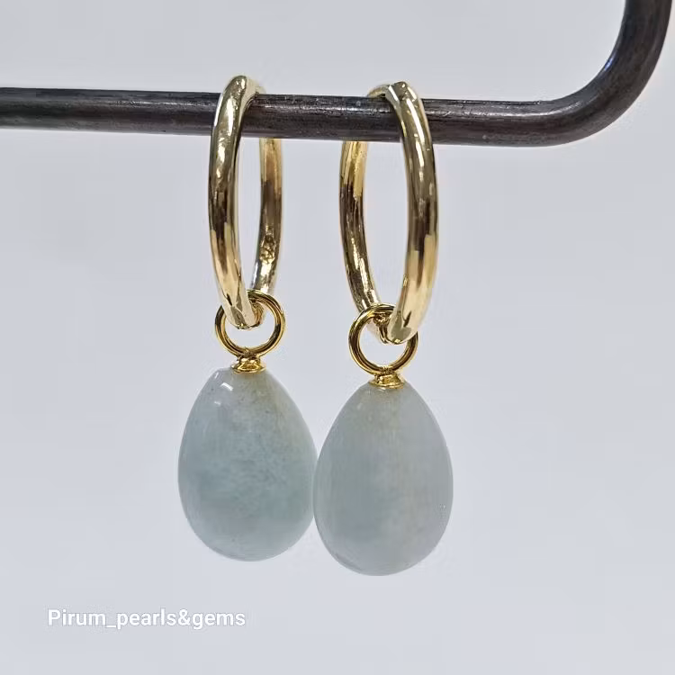 Vacker ljusblå platt akvamarin 10x15 mm på nickelfri förgylld silverögla för att hänga på creolring eller öronkrok.