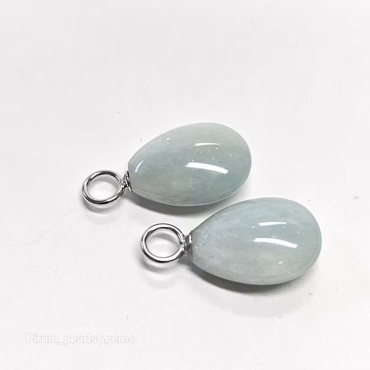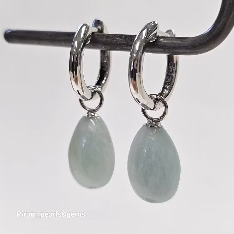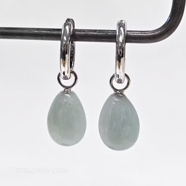 Vacker ljusblå platt akvamarin 10x15 mm på nickelfri silverögla för att hänga på creolring eller öronkrok.