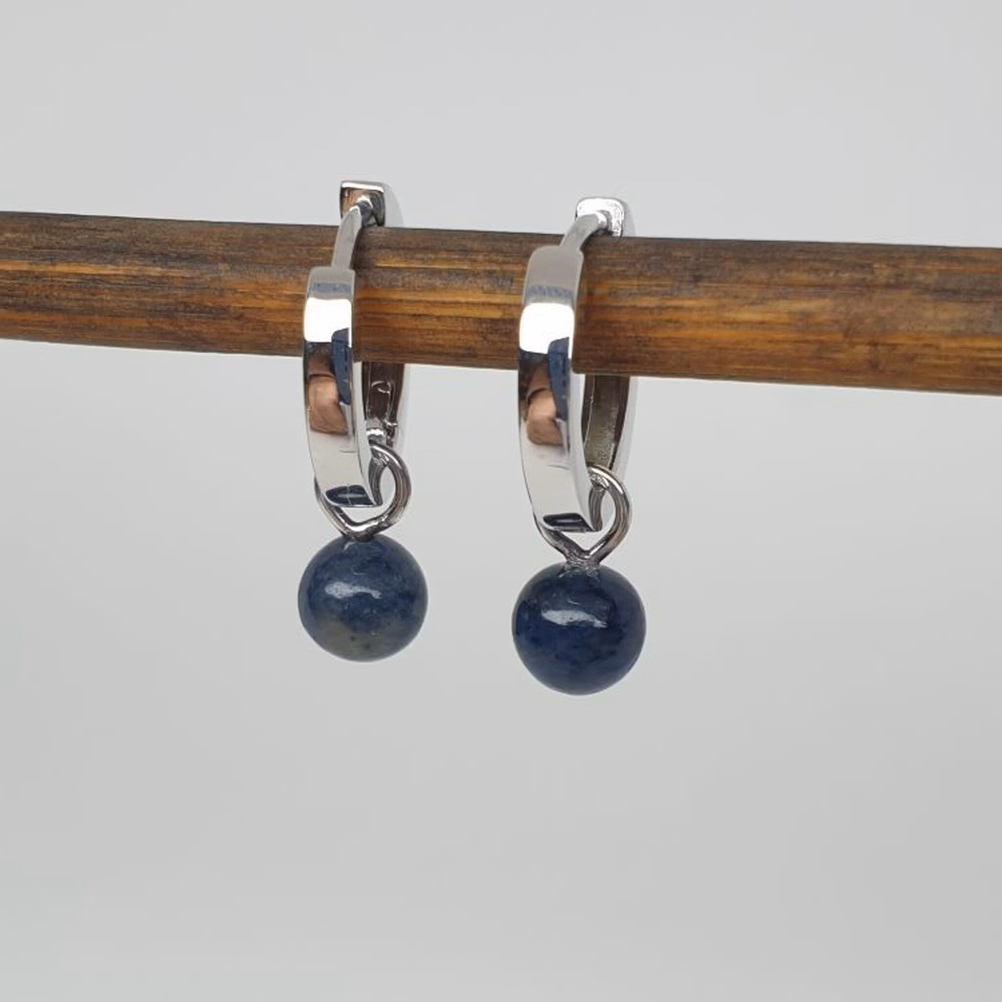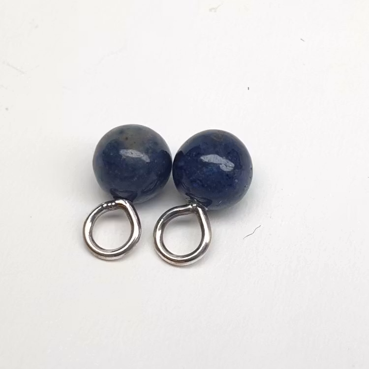 Blå dumorterit kula 6 mm på nickelfri silverögla med cubic zirkon för att hänga på creolring eller öronkrok.