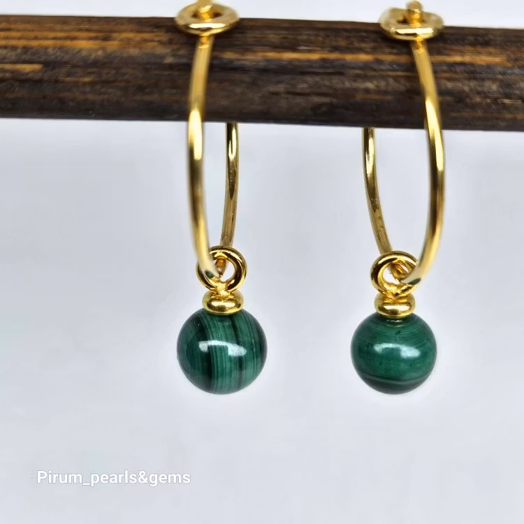 Malakit kula 6 mm på nickelfri förgylld silverögla för att hänga på creolring eller öronkrok.