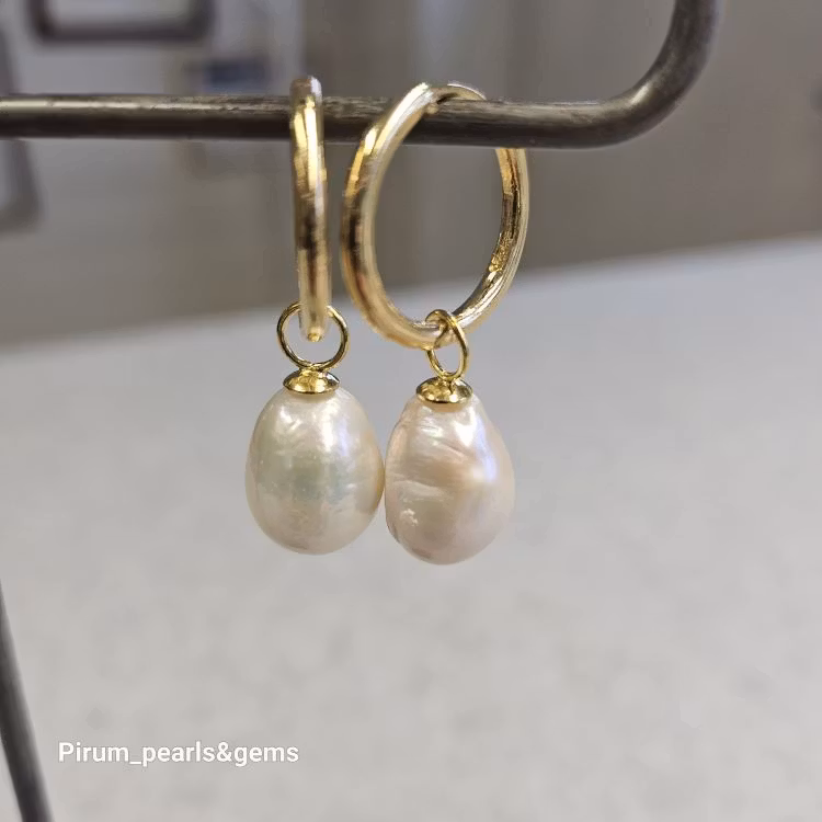 Vit sötvattenpärla ca 10x12 mm på nickelfri förgylld silverögla för att hänga på creolring eller öronkrok.