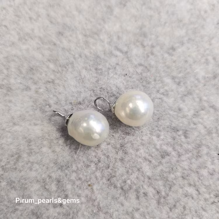 Material Vit metallic sötvattenpärla 10 mm barock med vacker lyster, på nickelfri silverögla för att hänga på creolring eller öronkrok.