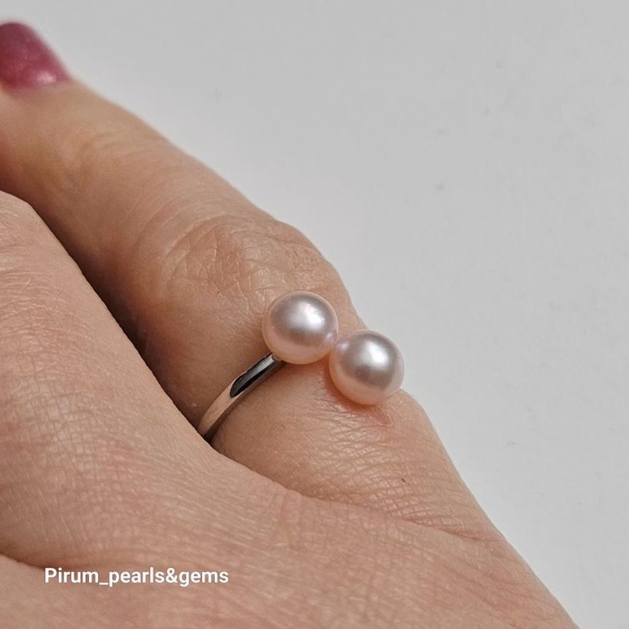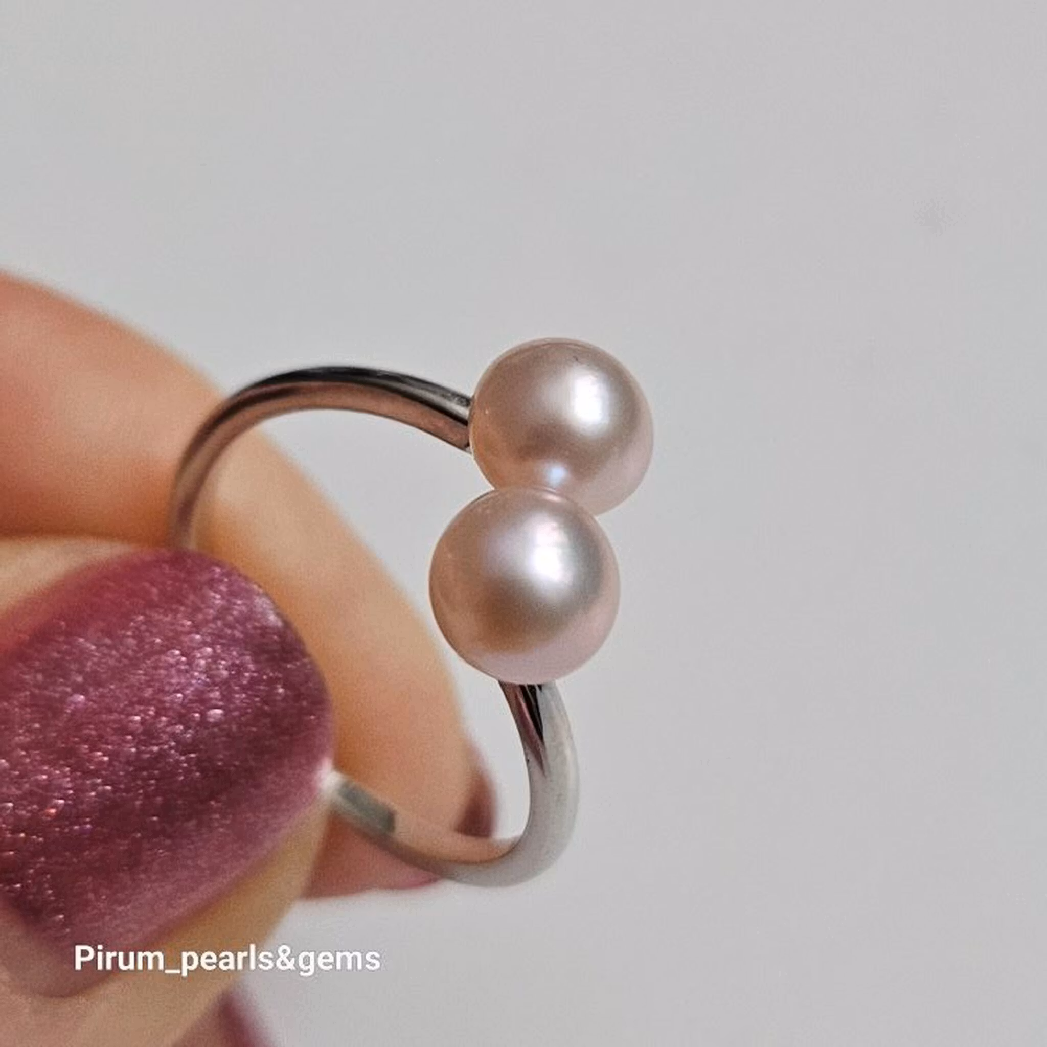 Silverring med design som går omlott vid pärlorna, två rosa odlade sötvattenpärlor ca 5 mm. Silverringen är enkel att justera så den passar önskat finger.